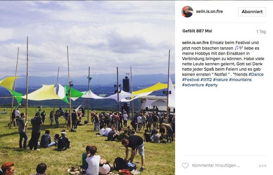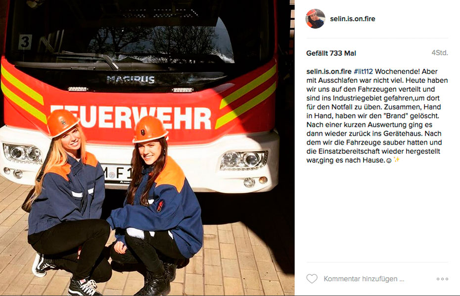 Wir nutzen das bei der Jugend beliebteste soziale Netzwerk Instagram, indem wir mit einem gestellten Account einen Influencer erschaffen, der Aufmerksamkeit für die Jugendfeuerwehr herstellt. Unser Influencer ist das sympathische Mädchen Selin mit türkischem Hintergrund, welches mit ihren Posts Einblicke in ihr Leben gewährt. Sie erfüllt besonders bei Mädchen (12 bis 15 Jahre) eine Vorbildfunktion. Oft erwähnt sie hierbei ihre Mitgliedschaft bei der JF und erzeugt durch positive und informierende Bilder ein Interesse bei der Jugend, sich dort zu engagieren. Mit begeisterten Posts weist sie auf andere Aktionen und Kampagnen der JF (Bierdeckel und interaktives Billboard) hin und sorgt damit für Verbreitung dieser. Alle Posts die mit der JF in Verbindung stehen, werden mit dem Hashtag #lit112 versehen. »Lit« ist ein Jugendwort und bedeutet entflammt, cool. Mit ihrem weiten Wirkungsbereich spricht unsere Kampagne auch Jugendlich an, welche davor noch keine Berührung mit der JF hatten.