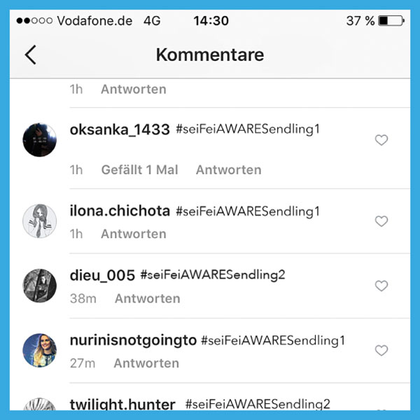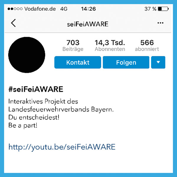 Ein YouTube-Kanal »seiFeiAWARE« (»sei« = Aufruf zum Mitmachen, »fei« = Bezug zu Bayern, »AWARE« = Bewusstsein schaffen) wird erstellt. Organisation und Produktion der Videos übernimmt die Agentur.